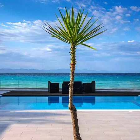 Os hóspedes podem desfrutar de uma vista para o mar para o mar de terraço na Vaso Beach Front Villa Ialysos à beira-mar, a uma distância aproximada de 6 km de Museu Arqueológico de Rodes.